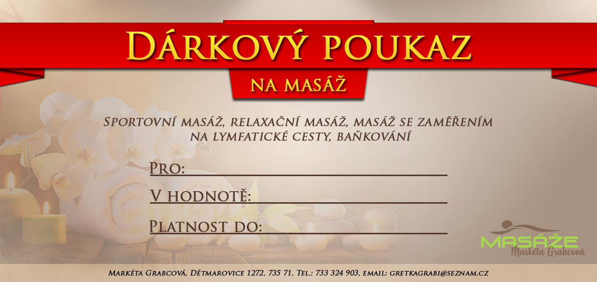 Nabízím dárkové poukazy v jakékoliv požadované hodnotě od 200 Kč. Platnost poukazu je 6 měsíců.